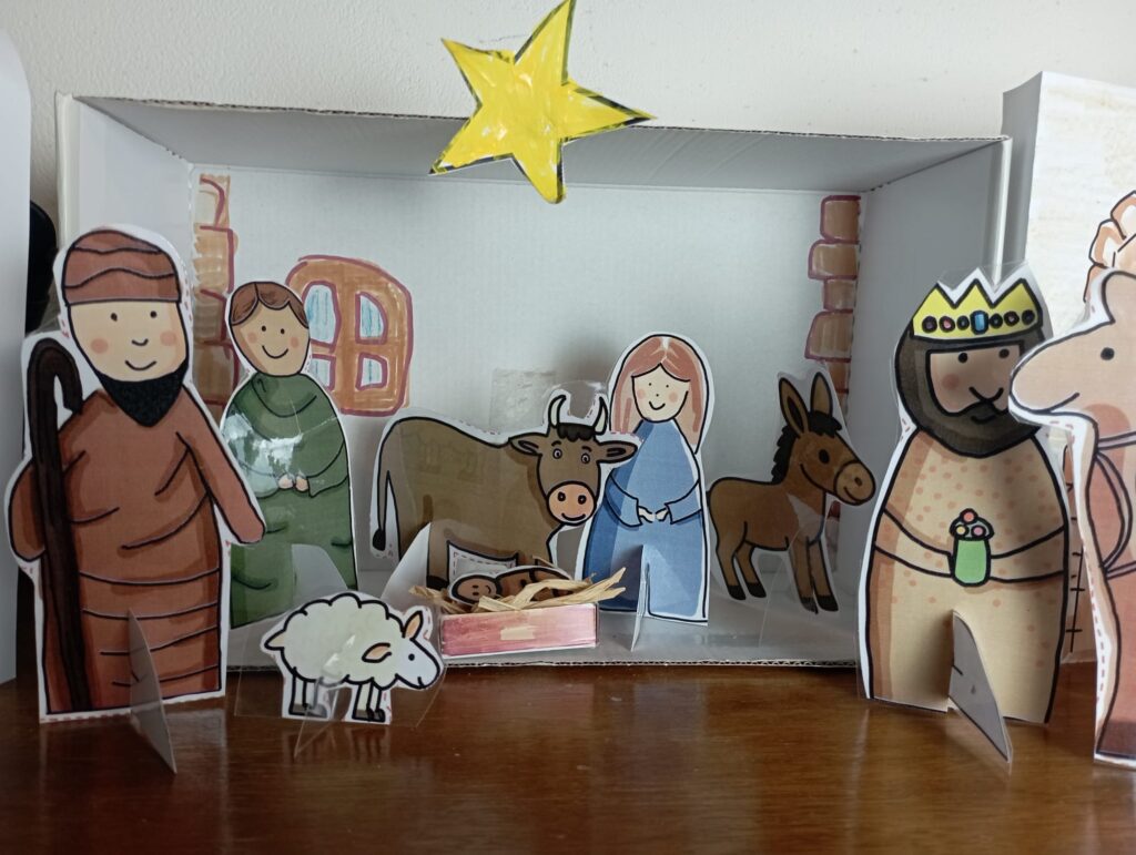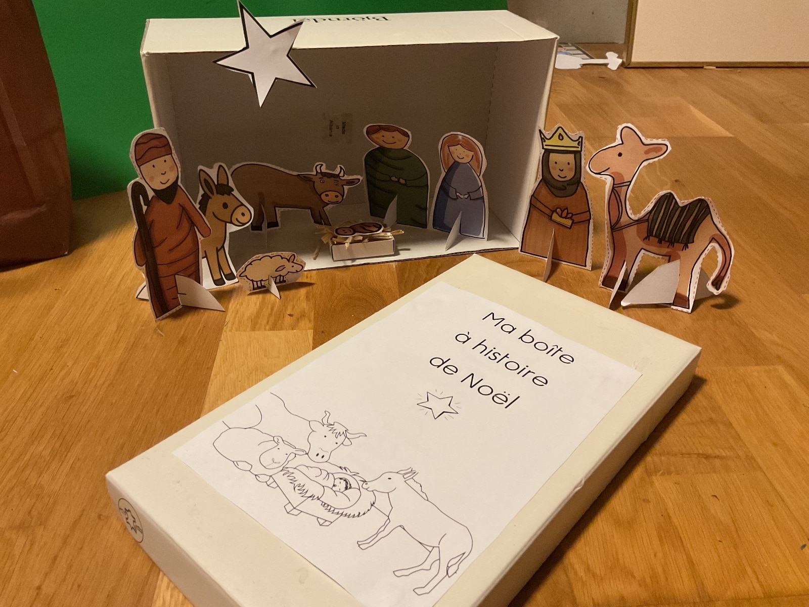 Afin que les enfants puissent raconter à leur tour l’histoire de Noël, ils et elles sont invité.e.s à réaliser une crèche. Vous trouverez ici la liste du matériel à préparer ainsi que les éléments à imprimer.